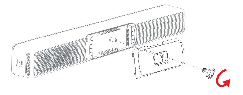 配線後、W70はケーブルカバーの上下または中央の穴にケーブルを通し、Dリング付きのネジでケーブルカバーを固定してください。