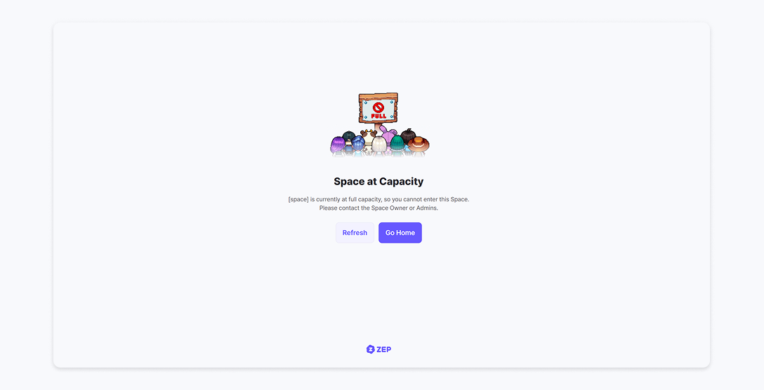 Users who access the Space that have exceeded its capacity are restricted from entering.