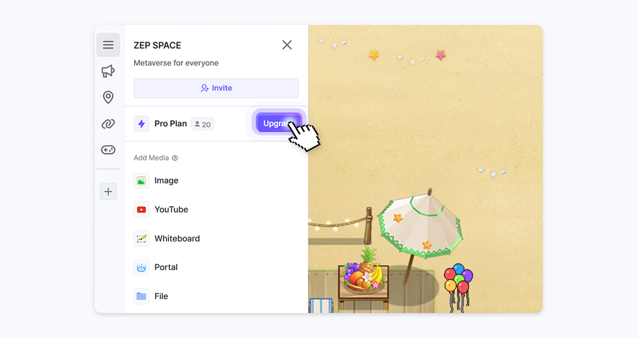 Click the [Upgrade] button in the sidebar of the space you want to upgrade.