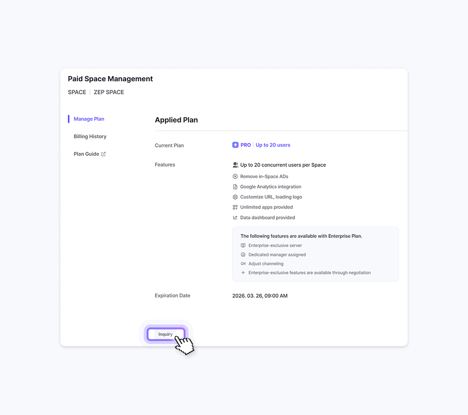 To subscribe to the Enterprise plan, please request a separate consultation by submitting your inquiry through the link below.