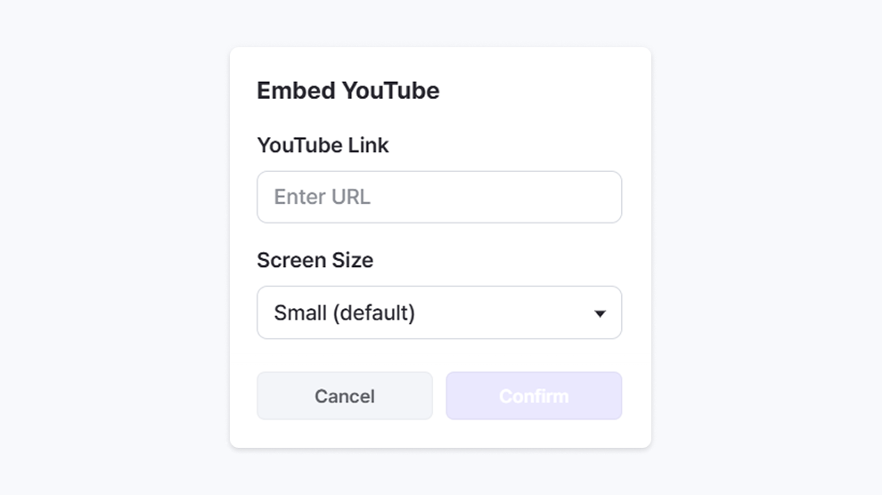 You can add a YouTube video or a live stream at your current location by selecting YouTube, pasting the share link, and choosing the screen size.