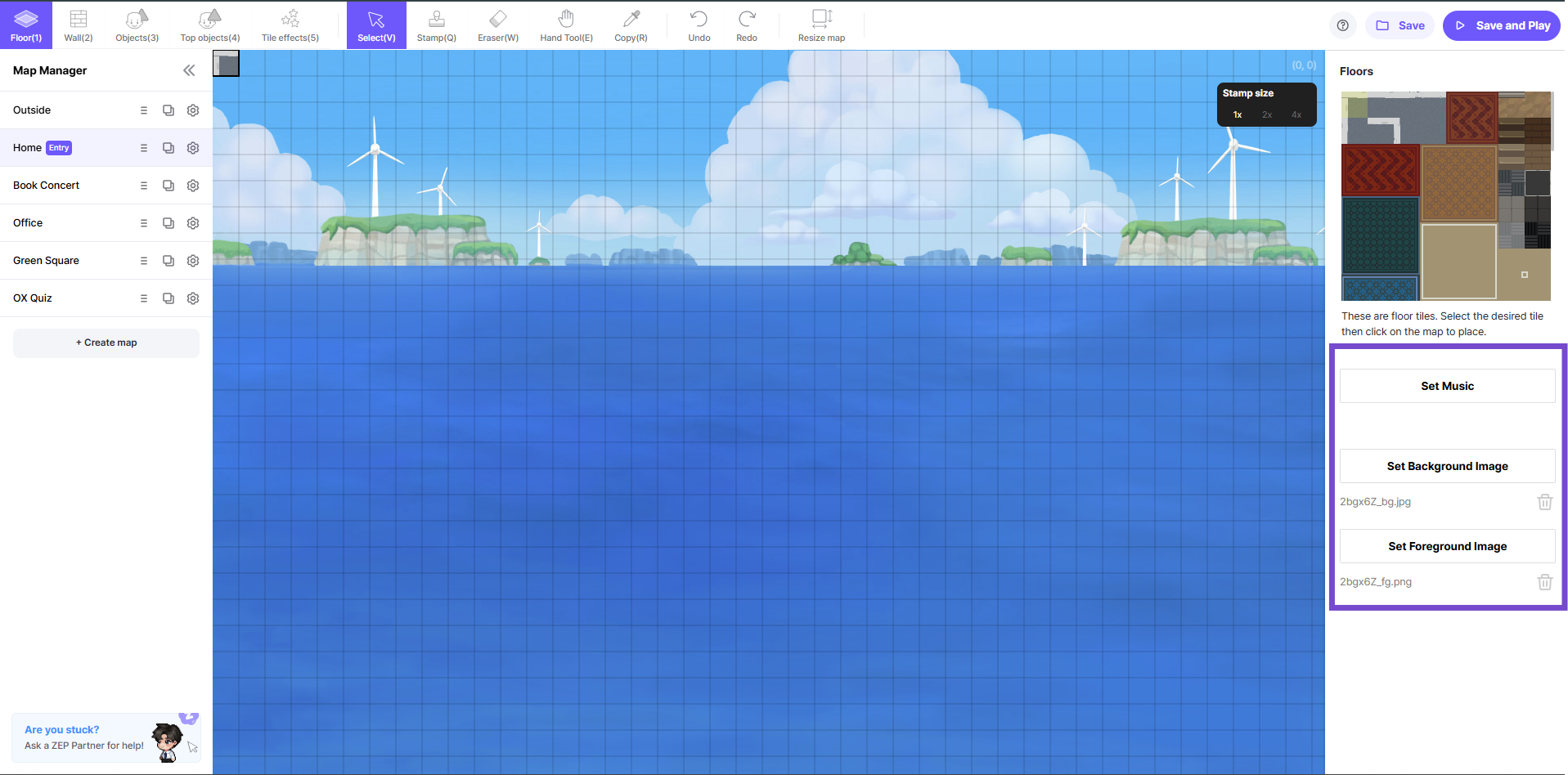 This background is placed in front of avatars and can be used to create a sense of depth.