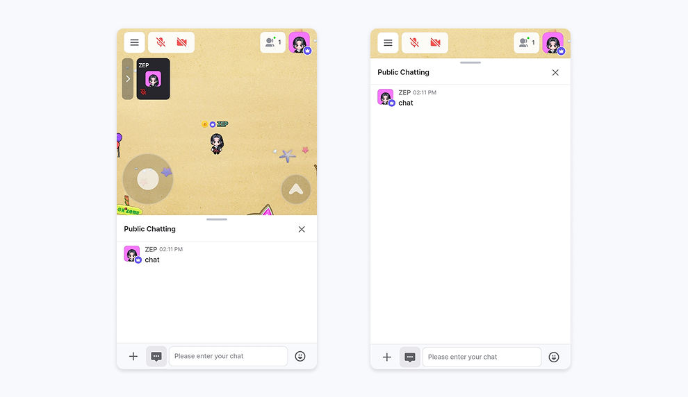 Chat tab classification: It is divided into an all(public) tab and a private tab.