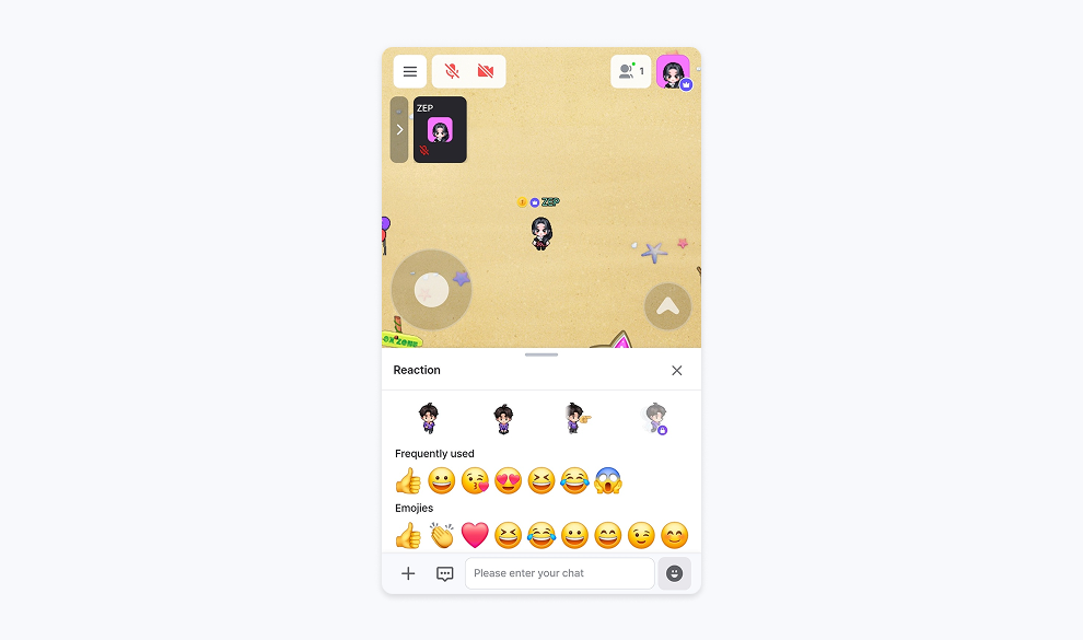 Reaction feature: Click the reaction icon to use the default icons, and click the 'More Reactions' button to freely use other emoticons in addition to the default actions.