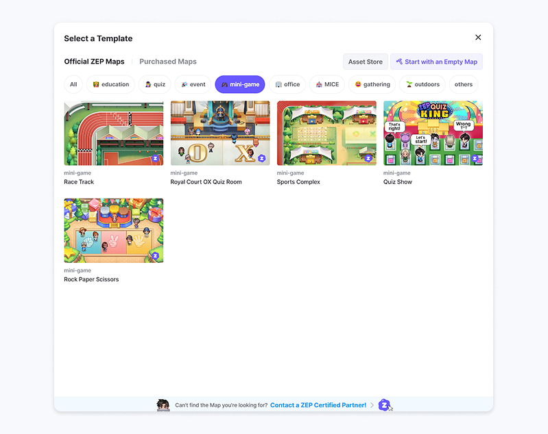 Create a Rock Paper Scissors map using the template from Create Space > Official ZEP Maps > Rock Paper Scissors.