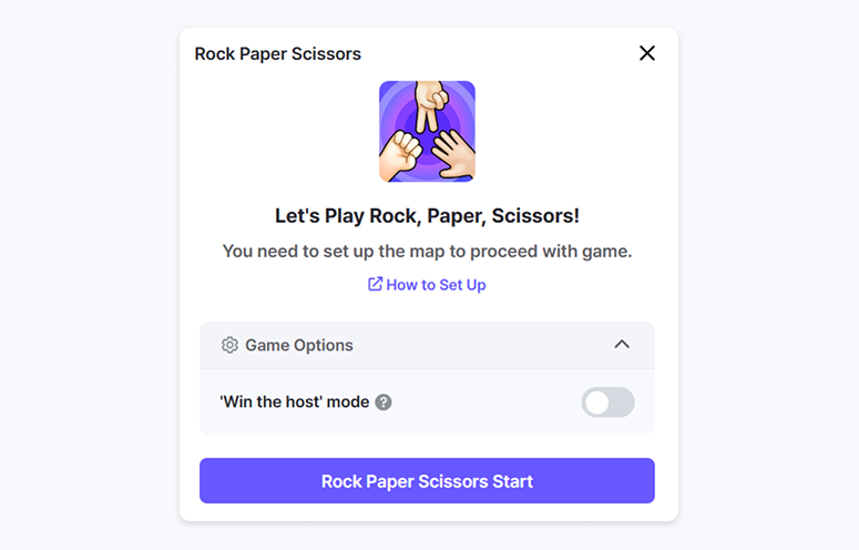 The host first chooses rock, paper, or scissors. Once the host has selected, it cannot be changed.