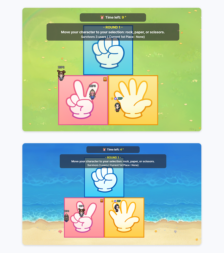 When the game starts, a menu for the host to select rock, paper, or scissors will appear.