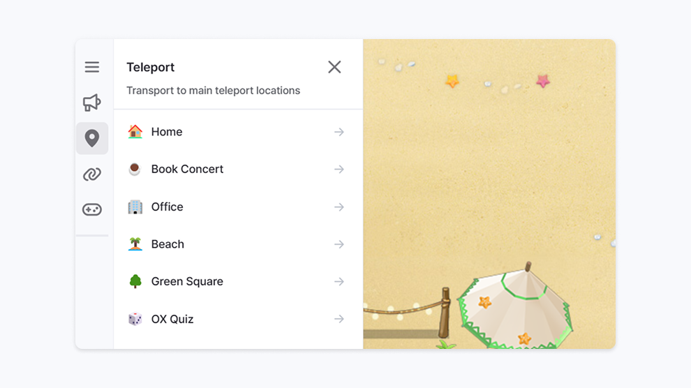 Display side bar icon: Icons for the teleport and link functions set by the host will be displayed on the sidebar.
