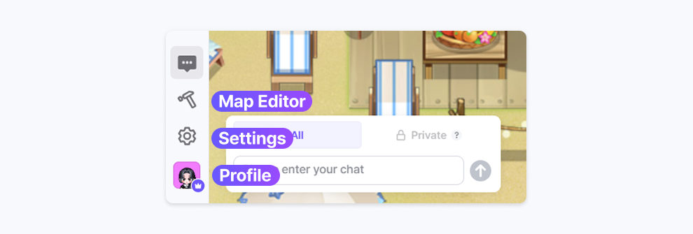 A map editor and setings icon has been placed at the bottom of the sidebar.