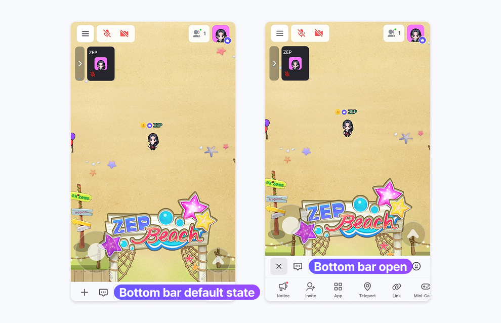 If the host has enabled any features, you can view and use them on the bottom bar. (ex: Mini-Games)