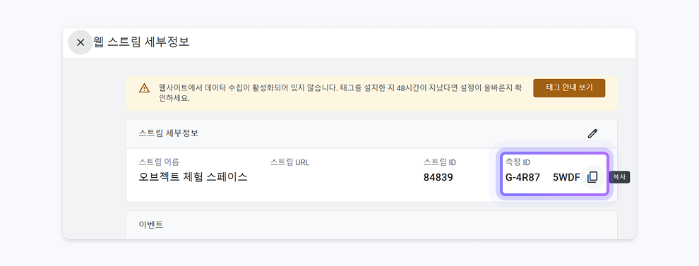 After creating a Google Analytics account and property, follow these steps: Go to the lower left corner (setting) and click on "Admin." Then, select "Account," "Property," and "Data Streams." From there, you can find the Measurement ID that you need to copy.