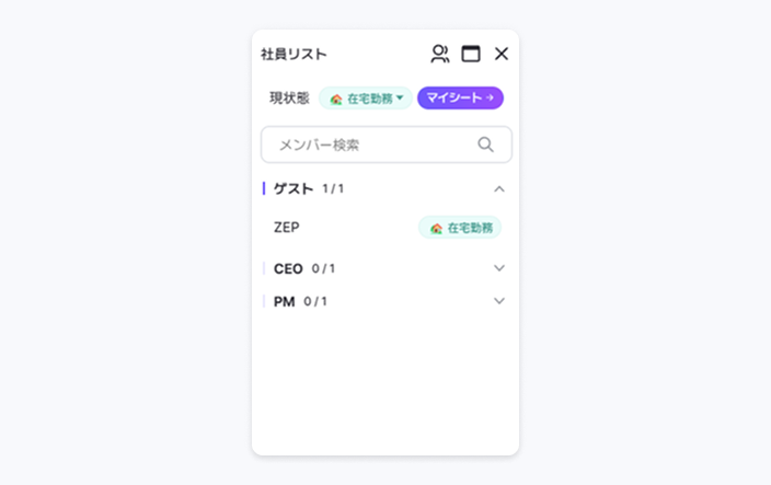 社員が個人席にいない場合、社員リストの現状態を確認し管理します。