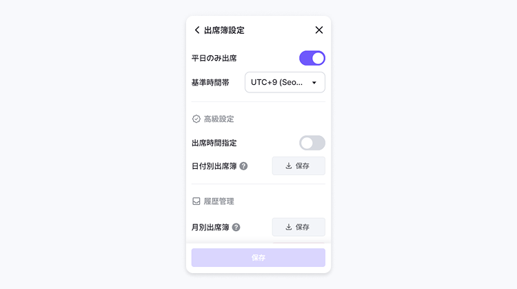 出席簿設定で管理者はユーザーの出席情報をダウンロードできます。