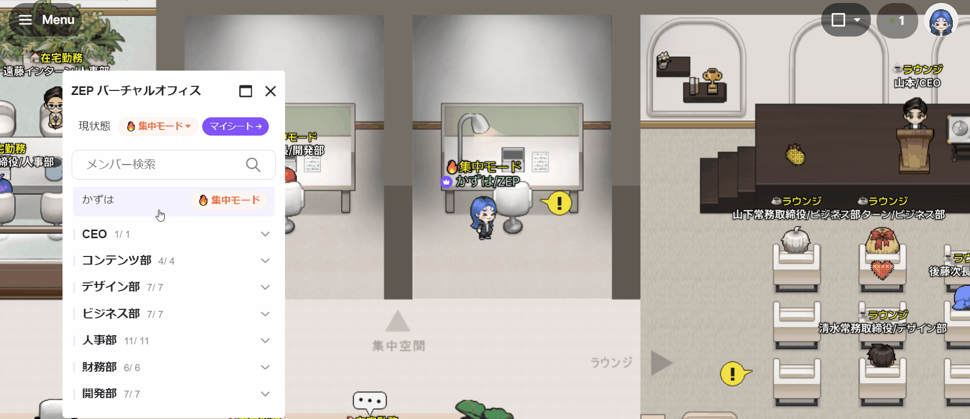 ZEPバーチャルオフィスはリモート勤務に最適化された効率的なオフィスです。