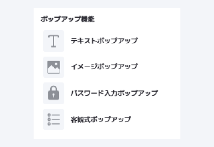テキストポップアップ | テキストをポップアップで表示します。 |