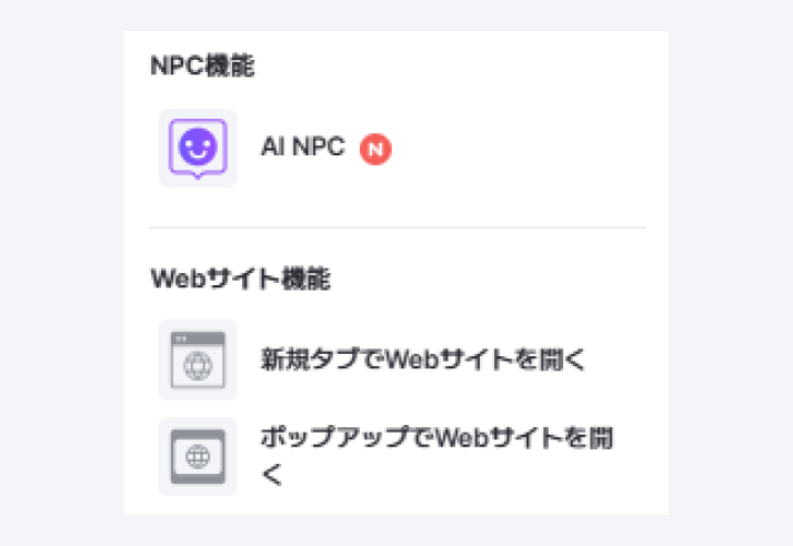 オブジェクトとの相互作用で「新規タブでWebサイトを開く」を作動できます。 マップ空間でWebサイトをポップアップで開きます。