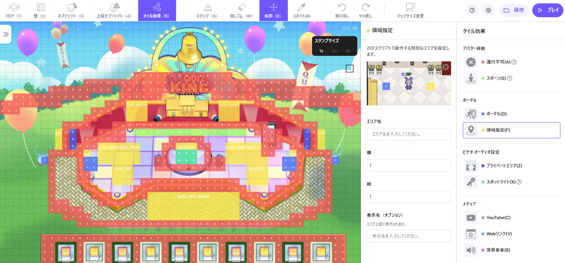 新規マップでクイズショーを進行するためにはマップエディタでクイズショーのための設定が必要となります。