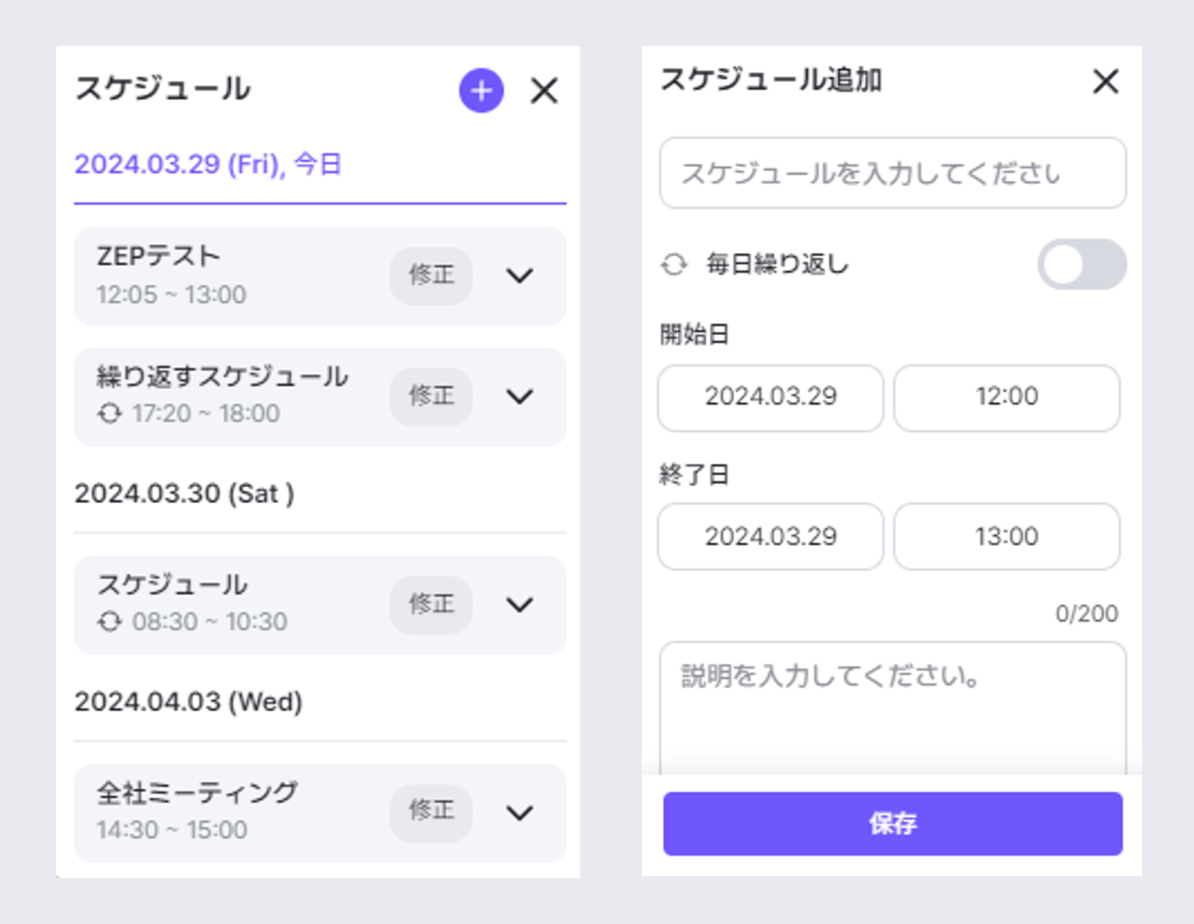 右上の[+]ボタンを押すとスケジュールを追加できます。