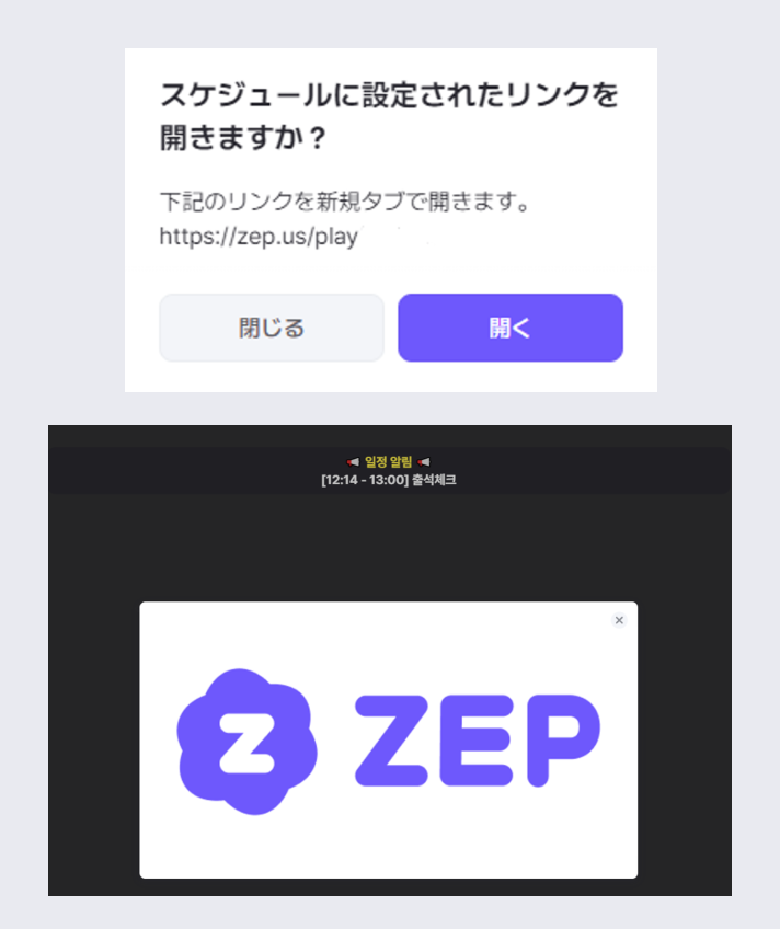 Webリンクを入力すると、スケジュールの開始時間に全ユーザーに対し、そのリンクに移動できるポップアップが表示されます。