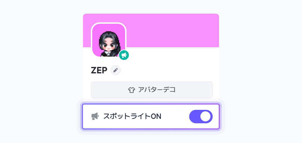 スタッフ以上の権限を持つユーザーは、自分のプロフィールまたは参加者のプロフィールからスポットライトのトグルをオンまたはオフにできます。