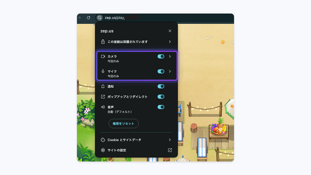 ブラウザでカメラとマイクを引き続き使用すると、使用したいブラウザでカメラとマイクが使用できなくなる可能性があります。