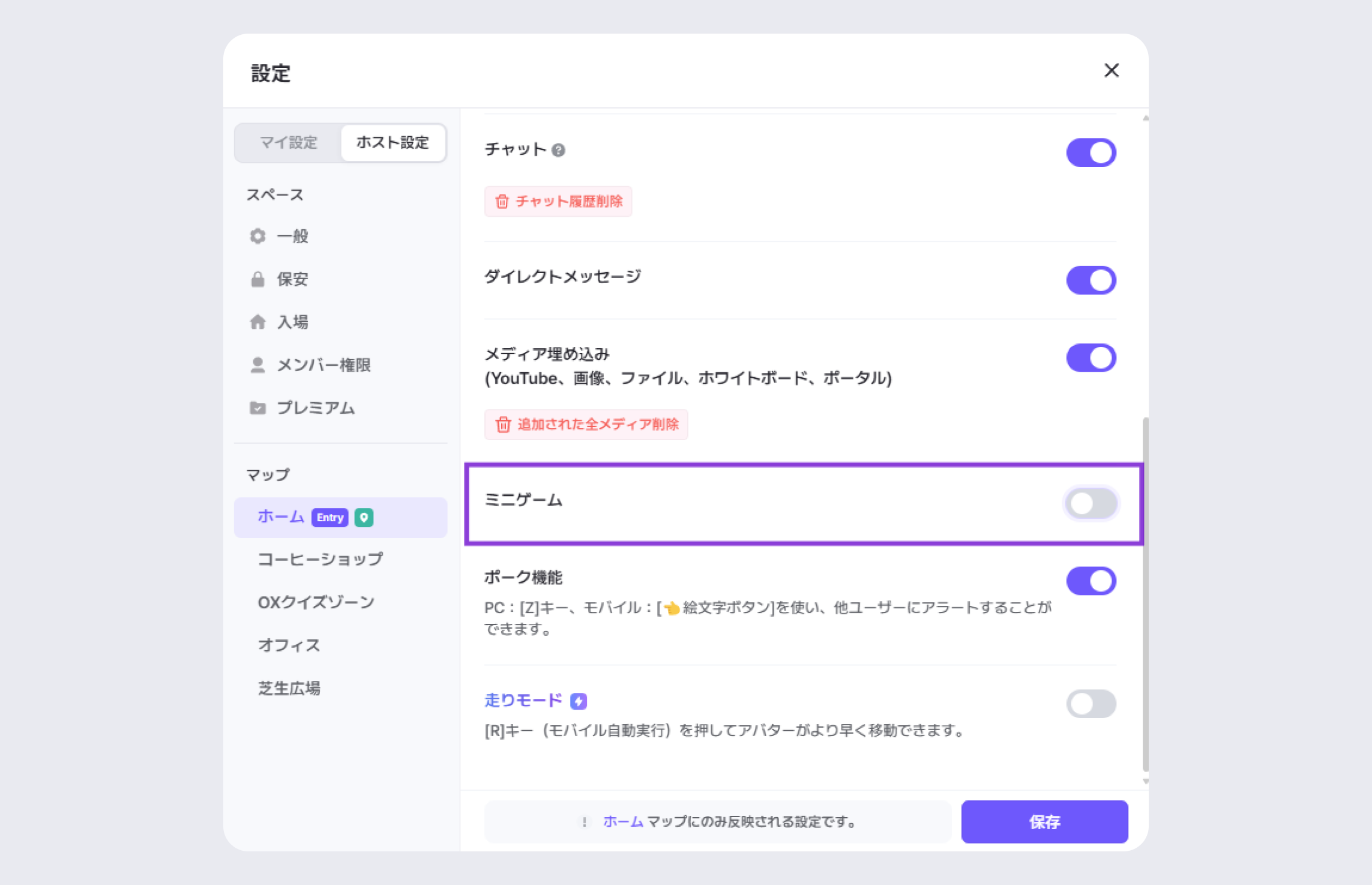 ZEPでは新しいスペースを作成すると、接続する誰でもゲームを実行し、楽しめます。