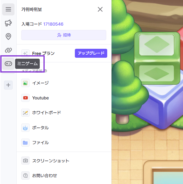 左側サイドバーでミニゲームを選択します。