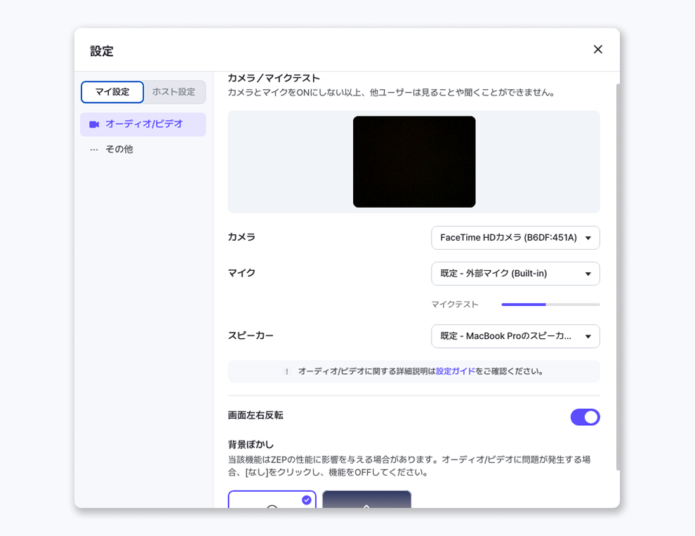背景ぼかし機能は、特定のデバイスおよびブラウザでのみ使用可能となります。