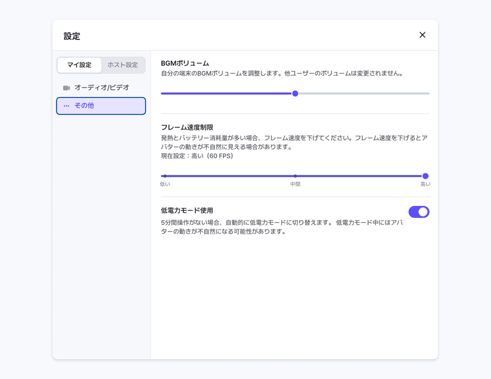 ただし、フレーム速度によってアバターの動きが不自然に見える場合があります。