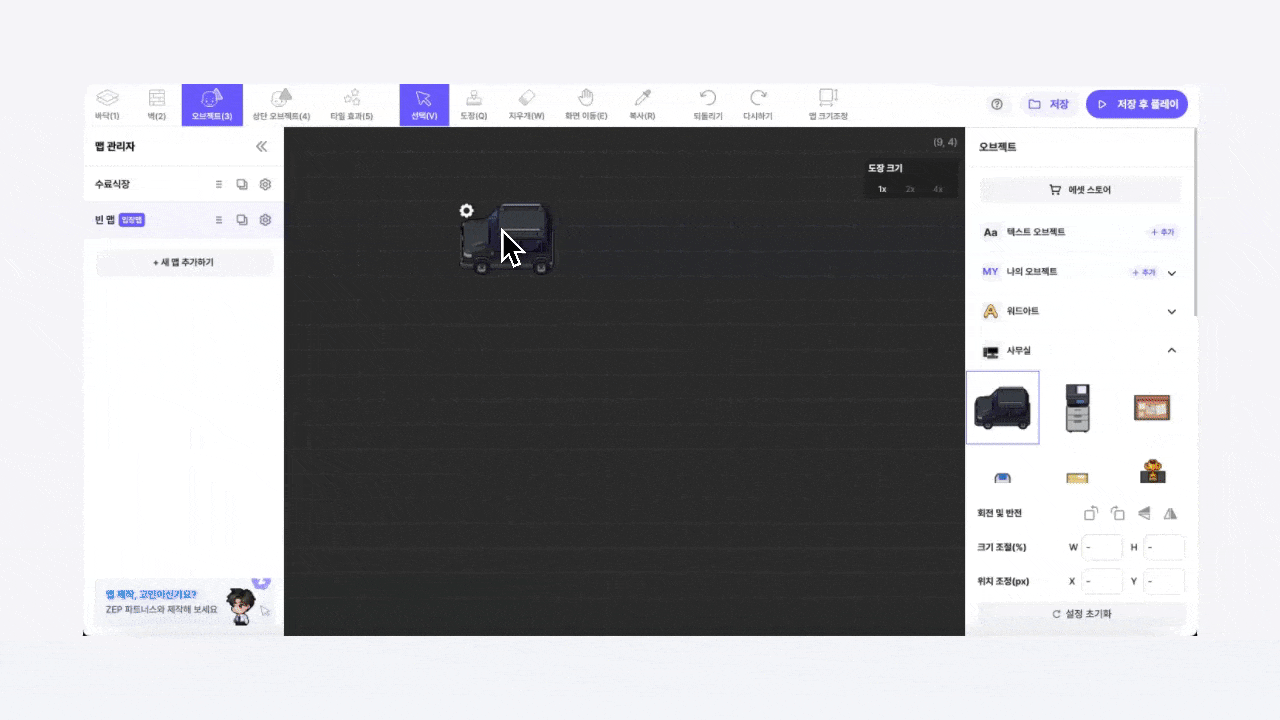マップを作る時、マップが多すぎたり、小さすぎる場合、マップサイズの変更ができます。