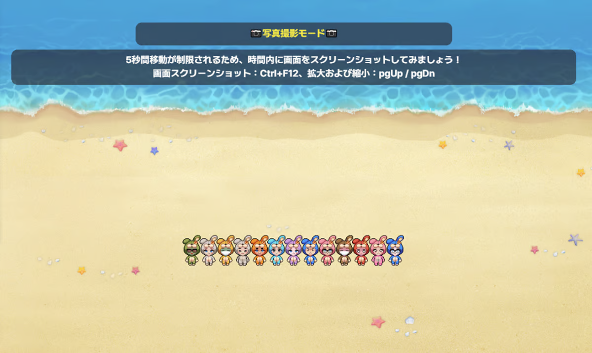撮影位置に配置されると、全ユーザーの移動が5秒間制限されます。