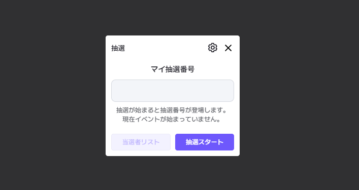 アプリ使用方法管理者はアプリを起動して[抽選開始]を押し、抽選イベントを開始します。イベント開始時、現在のマップ内の全参加者に異なる抽選番号が割り当てられ、10秒後に当選番号の抽選が開始されます。抽選設定を使用して、当選者にポイントを付与することができます。