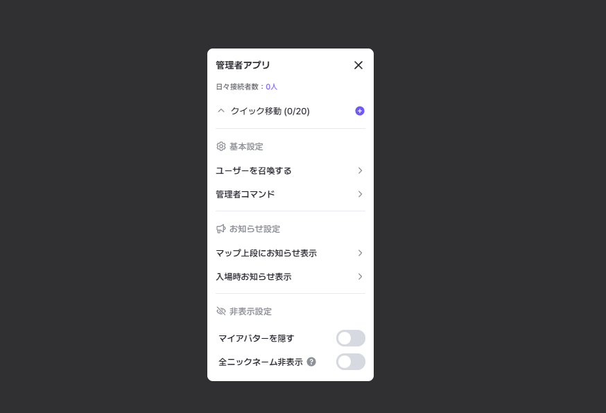 管理者権限を与えられたメンバーは管理者アプリを使用できます。