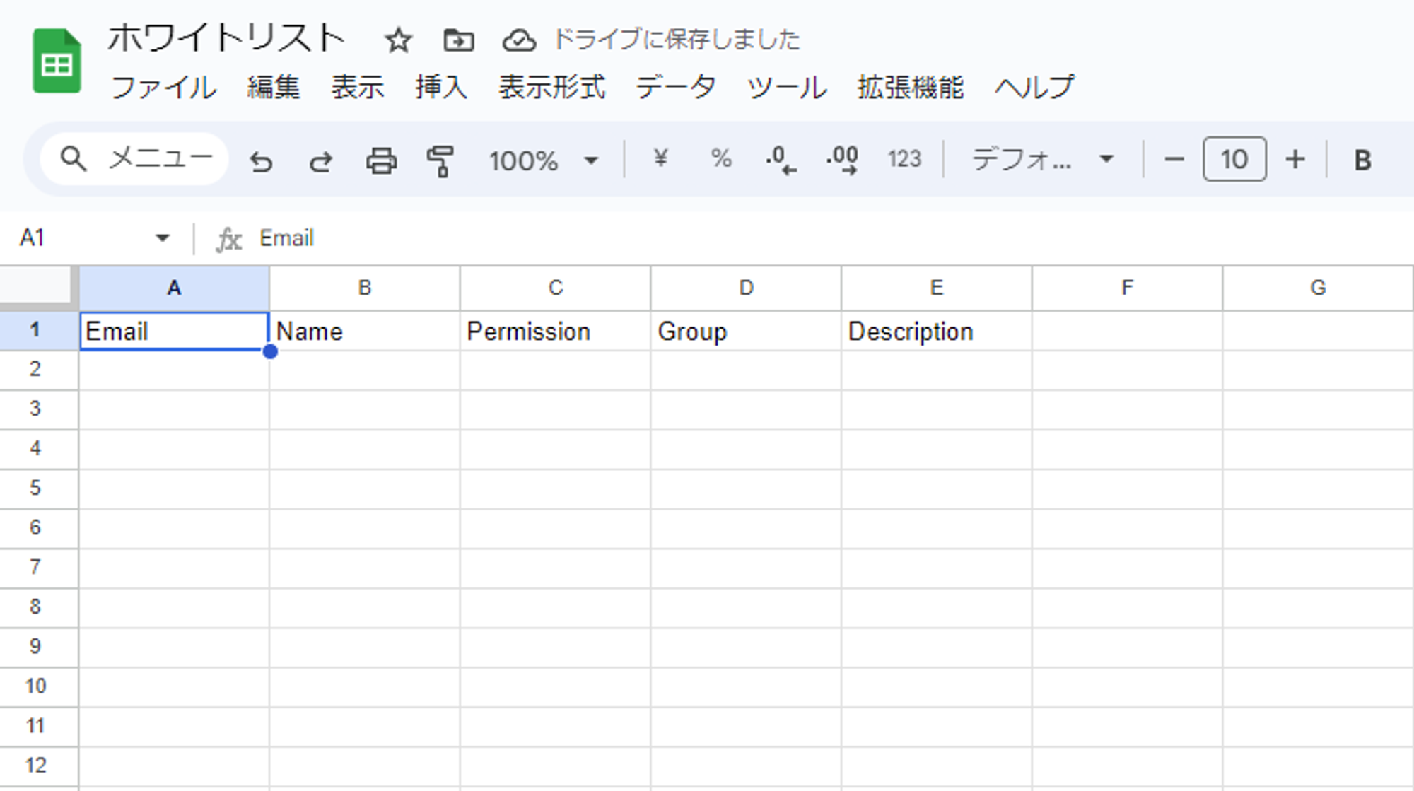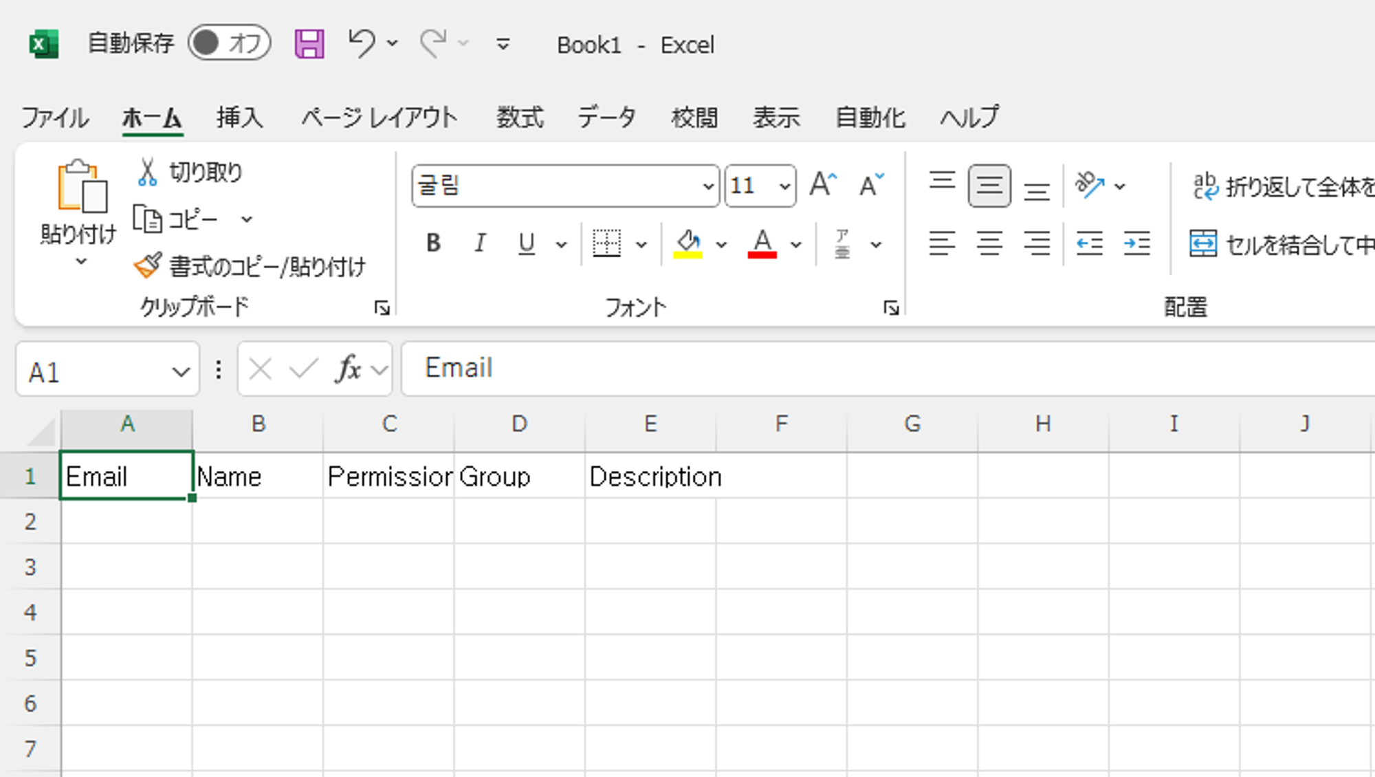 • GroupとDescription列は現在機能していないため、空欄のままでも大丈夫です。