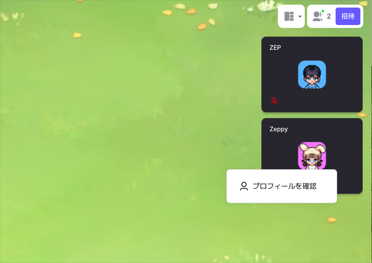 スペース入場時の基本設定はOFFとなり、赤いアイコンで表示されます。