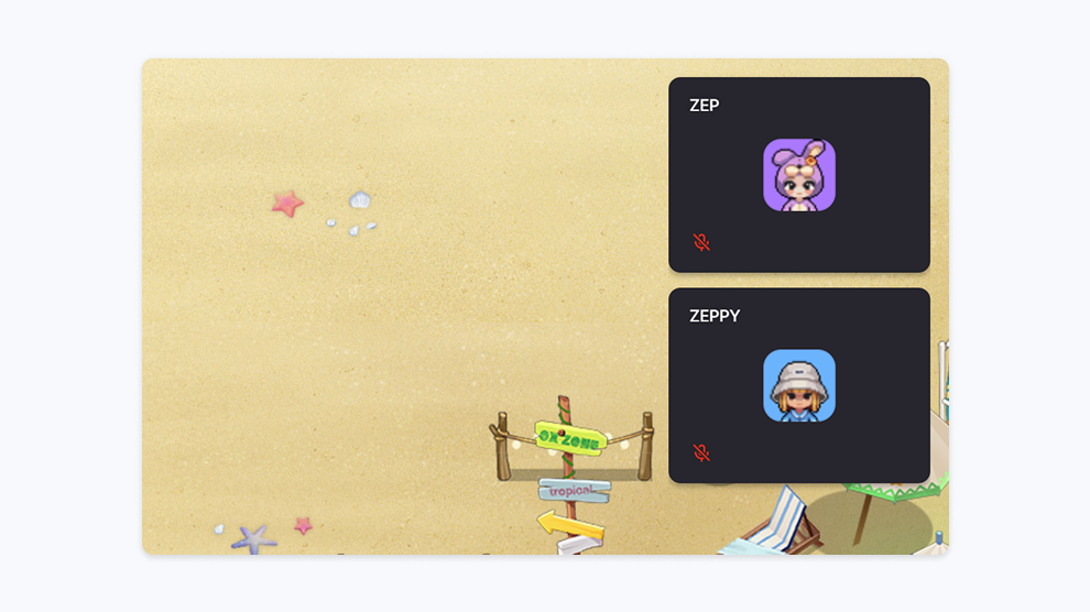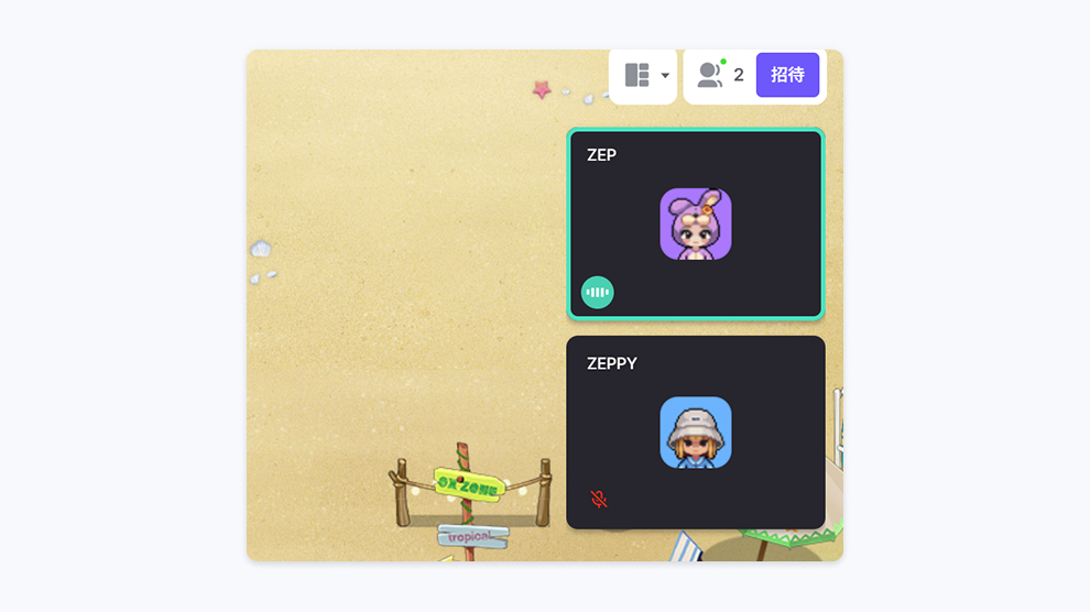 オーディオを使用しているユーザーはビデオボックスにミント色の枠とボイスアニメーションが表示されます。