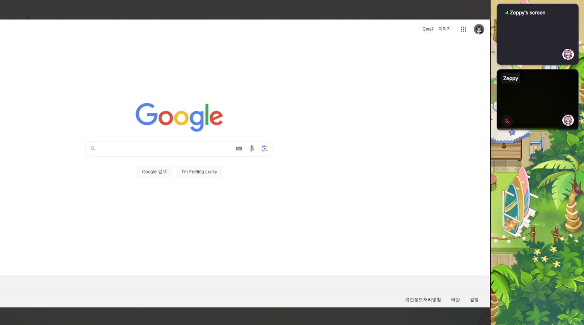 画面共有中は、ニックネーム’s screenという名前で追加されたビデオボックスに画面が表示されます。