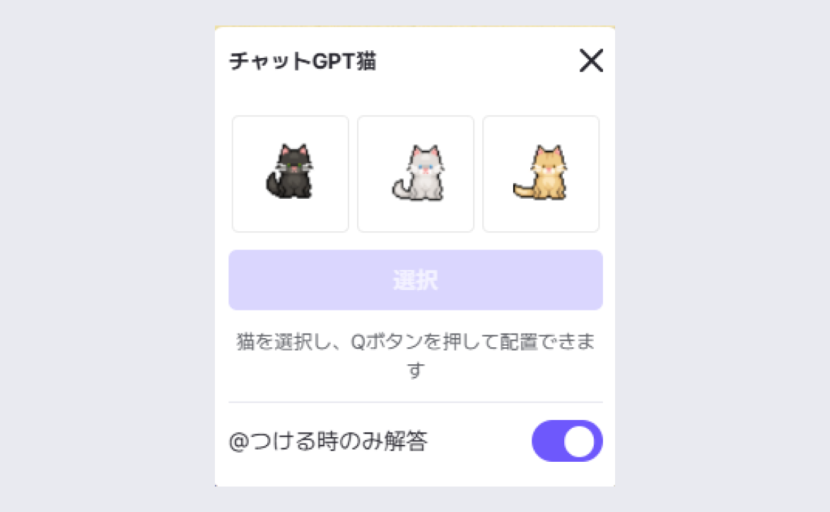 置きたい位置にchatGPT猫を設置できます。