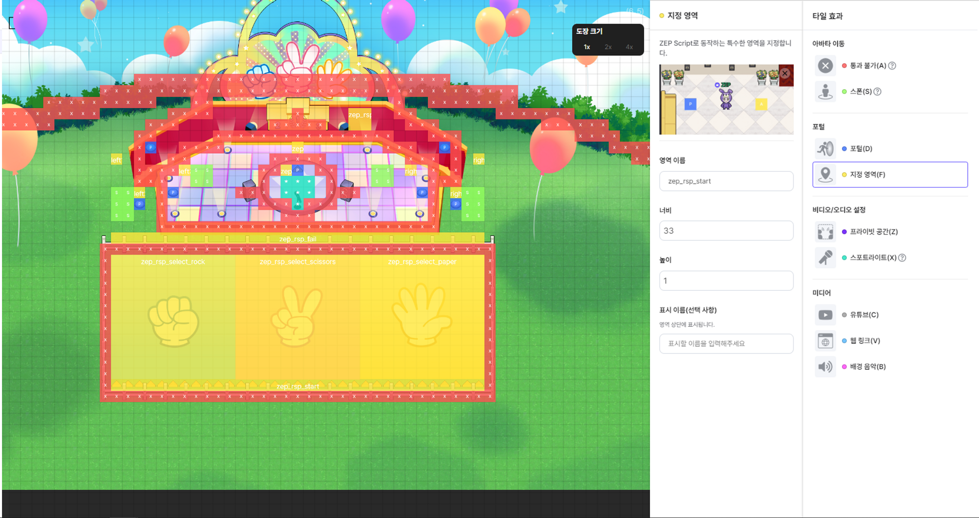 zep_rsp_start : 가위바위보를 시작하면 모든 참가자가 이동될 장소를 설정합니다.