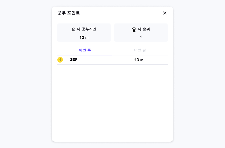 공부 포인트 탭을 통해 '이번 주' '이번 달' 공부시간 랭킹을 확인해보세요.