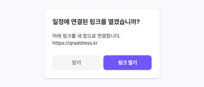 웹 주소를 입력하면 해당 링크로 이동할 수 있는 팝업 창이 표시됩니다.
