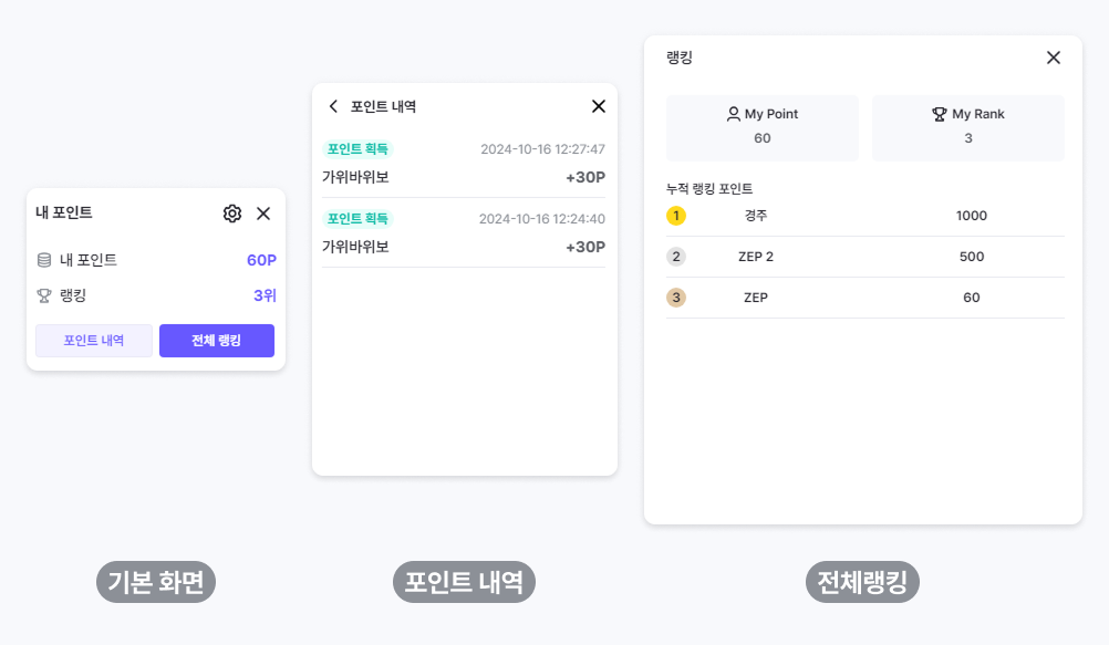 스페이스 내에 자신이 보유한 포인트와 랭킹을 확인할 수 있는 앱 입니다.