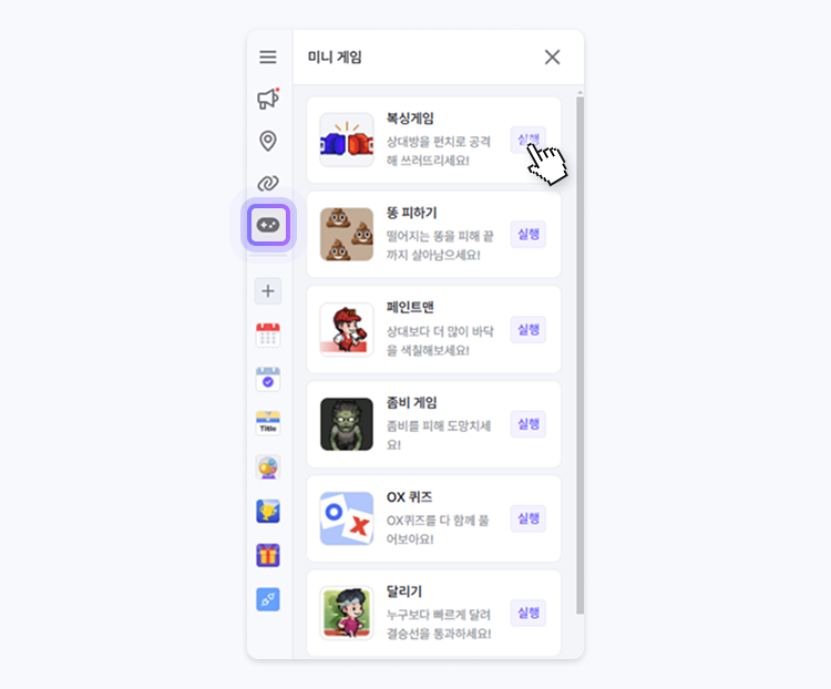 1. 왼쪽 사이드바에서 미니 게임을 선택합니다.