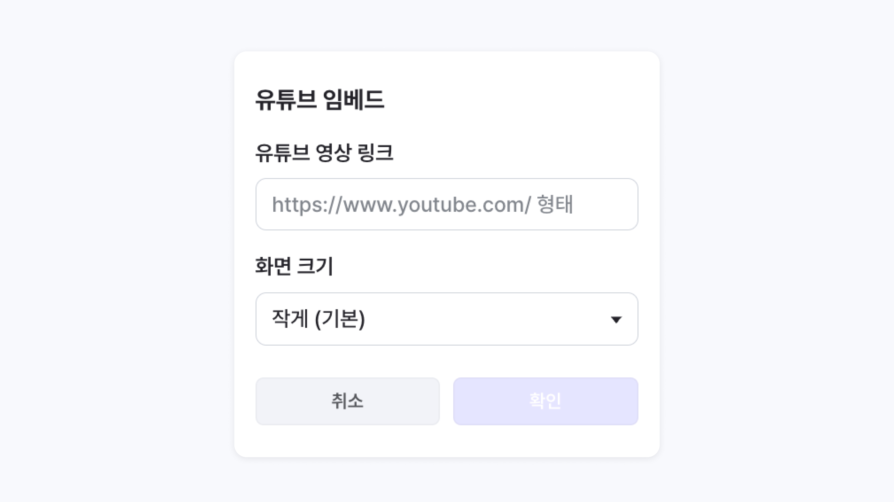 아래의 형태로 유튜브 임베드 기능을 사용할 수 있습니다.