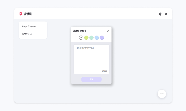설치된 앱을 클릭하면 화면 중앙에 방명록 위젯이 뜹니다. 이용자들이 자유롭게 글을 남기고, 다른 이용자들의 글도 확인할 수 있습니다.