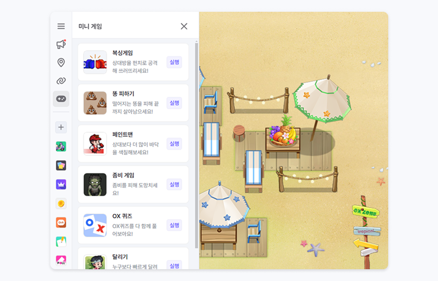 미니게임 아이콘 노출: 호스트가 미니게임을 활성화하면 사이드 바에 미니게임 아이콘이 노출됩니다.