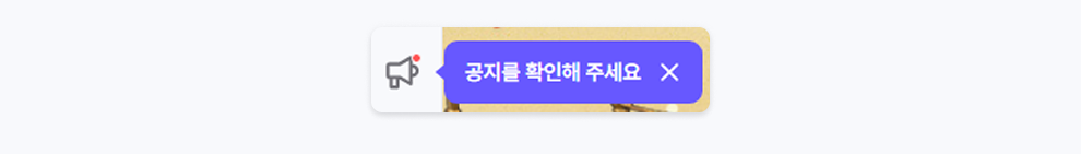 업데이트 알림: 공지가 변경되거나 추가되면 공지 아이콘 옆에 툴팁이 표시되어 업데이트를 확인할 수 있습니다.