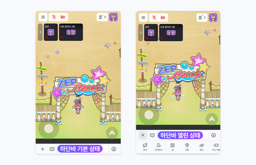 PC 버전과 동일하게 호스트가 추가한 기능만 하단 바에 표시됩니다.