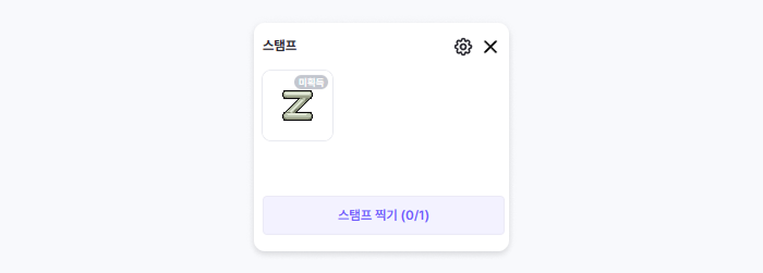 스탬프 획득하기 오브젝트 작동 시 스탬프 위젯창이 활성화되며,