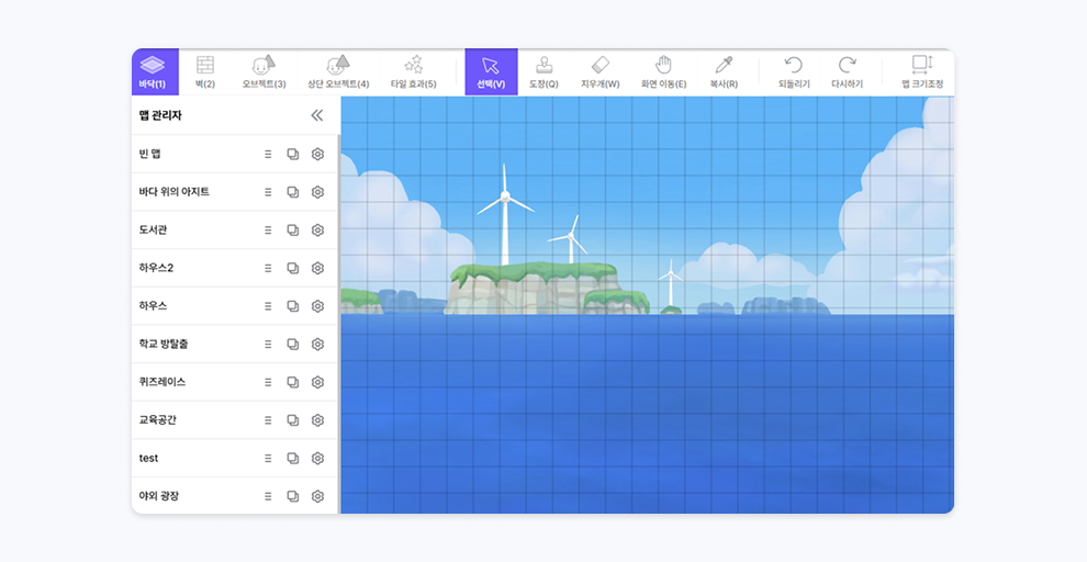 맵 에디터에서는 스페이스 내의 다양한 맵들을 쉽게 관리할 수 있습니다.